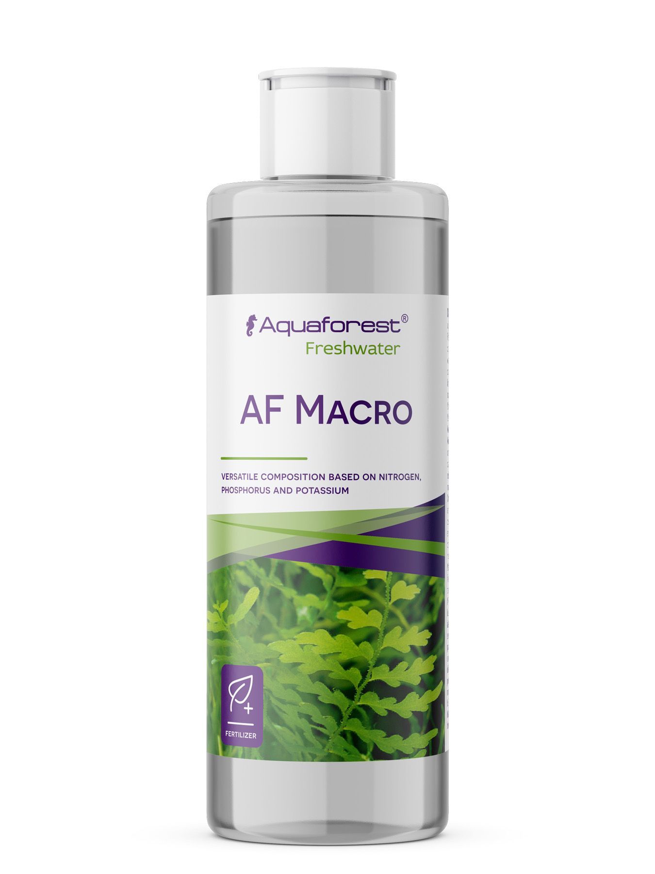 AF Makro obsahuje  vybrané složení dusíku, fosforu a draslíku (NPK) obohacené hořčíkem . Pravidelné používání AF Makro zajišťuje rychlý a zdravý růst rostlin a zaručuje jejich intenzivní a přirozené zbarvení. Perfektní poměr makroživin poskytuje všechny potřebné látky, které rostliny používají ve svém přirozeném prostředí.