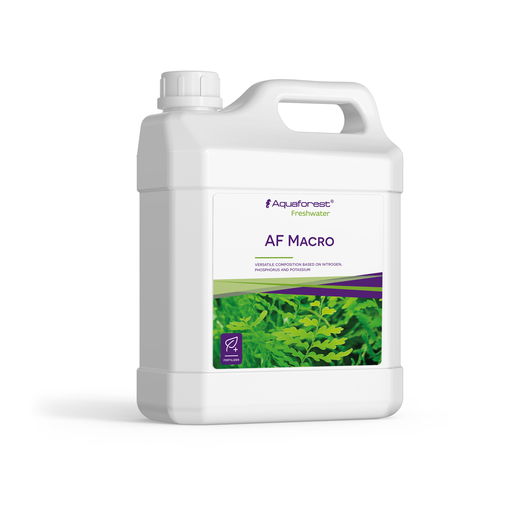 AF Makro obsahuje  vybrané složení dusíku, fosforu a draslíku (NPK) obohacené hořčíkem . Pravidelné používání AF Makro zajišťuje rychlý a zdravý růst rostlin a zaručuje jejich intenzivní a přirozené zbarvení. Perfektní poměr makroživin poskytuje všechny potřebné látky, které rostliny používají ve svém přirozeném prostředí.