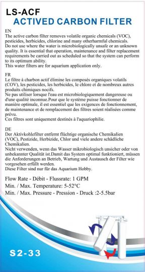 The active carbon filter removes volatile organic chemicals (VOC), pesticides, herbicides, chlorine and many other harmful chemicals.