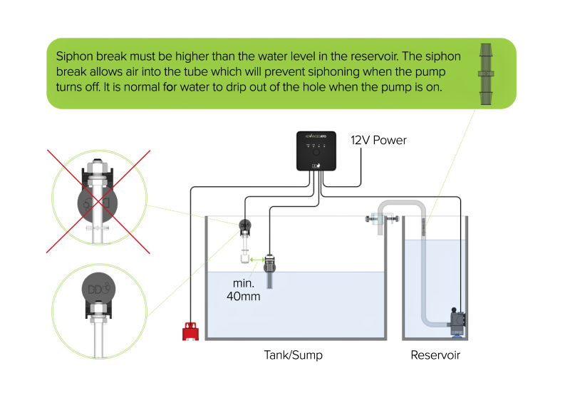 Jeho hlavní optický senzor má tři detekční body , které umožňují jednotce nejen regulovat hladinu vody na nastavené výšce, ale také rozpoznat, zda je hladina vody pod nebo nad normální hodnotou a případně spustit zvukový a vizuální alarm. Kromě hlavního optického senzoru je součástí dodávky i bezpečnostní plovákový senzor „Anti Overflow“ , který při spuštění vypne funkci ATO (funkci doplňování vody) a spustí výstrahu.