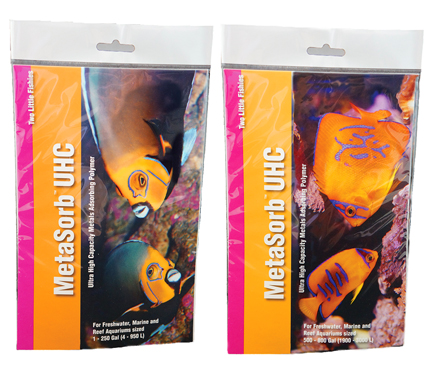 These metals may come from the water source, from foods, from artificial seawater mixes, therapeutic treatments, corroding metal equipment, magnets, pumps, etc. Mysterious ailments in fishes, corals and other invertebrates may occur when heavy metals reach a toxic threshold. MetaSorb UHC is made with patented high capacity polymers developed for the US Environmental Protection Agency’s Superfund Program. Insoluble in water and nontoxic, the polymers rapidly bind and permanently remove metals from fresh and saltwater, making it possible to restore the water quality.