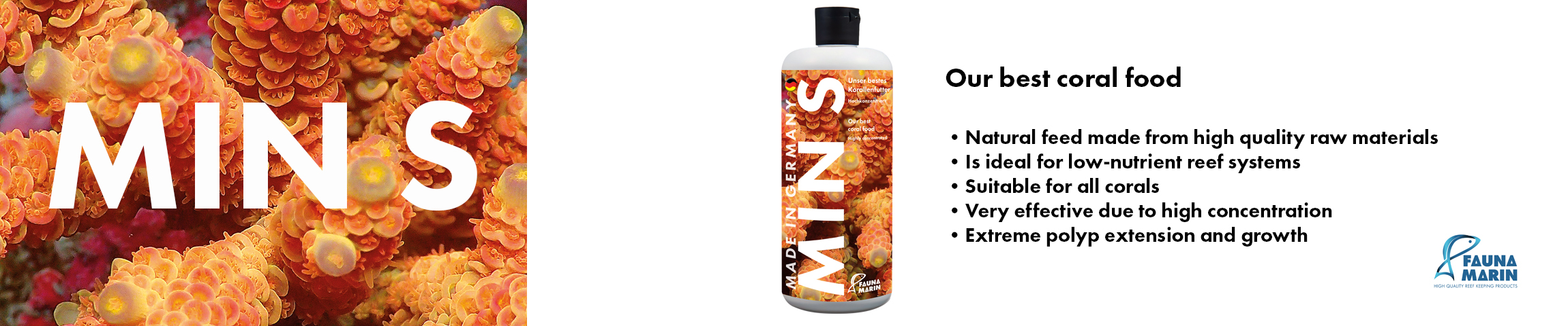 Min S je tekuté korálové krmivo, které lze použít pro všechny druhy korálnatců. Při základní dávce MIN S jsou koráli povzbuzeni k přijímání dalšího krmiva a mohou být tedy krmeny mnohem efektivněji.