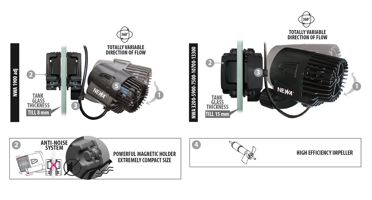Newa Wave 13300 je oběhové čerpadlo, které je užitečné pro simulování přirozených proudů ve sladkovodních a mořských akváriích.