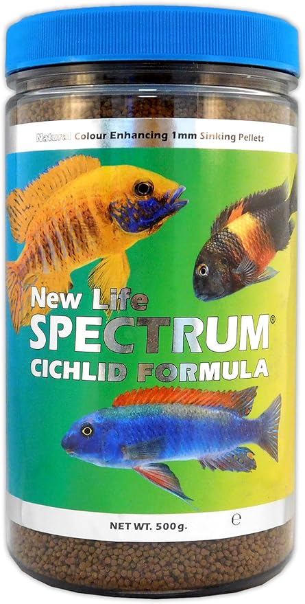 New Life Spectrum® Cichlid je členem speciální řady diet pro tropické ryby a pro řadu akvarijních společníků. Receptura pro cichlidy je vyladěna pro potřeby všežravých, býložravých a masožravých cichlid (sladkovodních tropických ryb)!