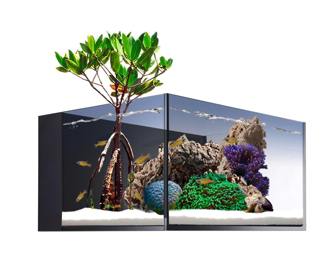 Pokuste se překročit hranice tradičního aquascapingu a zkuste vytáhnout útes až nad vodu. Horské útvary, zahrady fragů či laguna s mangrovy... to vše je možné vytvořit v tomto mělkém a přitom prostorově hlubokém akváriu se zabudovanou filtrací...