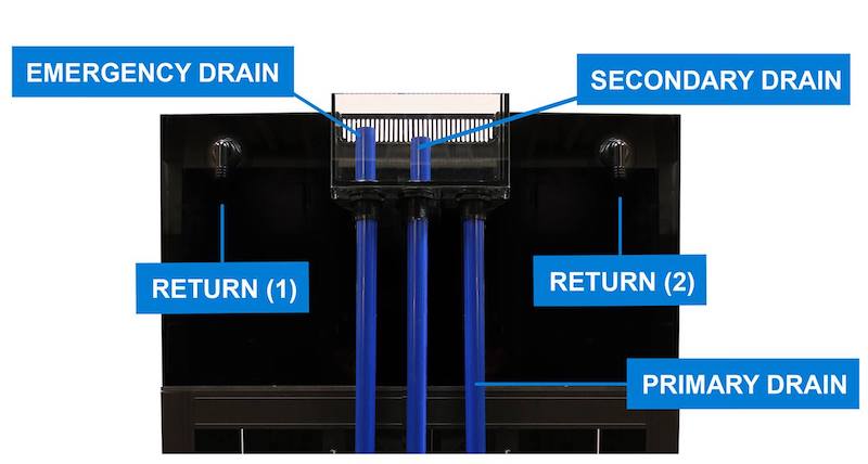 - NENÍ SOUČÁSTÍ potrubí: 1x ¾” LOC-LINE se 2 tryskami [vstup do akvária], 1x primární odpadní systém [přepad], 1x E- bezpečnostní odpad, 1x sekundární E-bezpečnostní odpad, 1x trubka výtlaku
