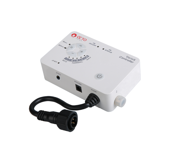 - S ovladačem VarioS mají uživatelé kontrolu nad průtokem, výběrem z pěti přednastavených rychlostí; indikováno pěti rozsvícenými LED diodami. Režim krmení 15 nebo 60 minut lze také zapnout nebo vypnout stisknutím tlačítka.