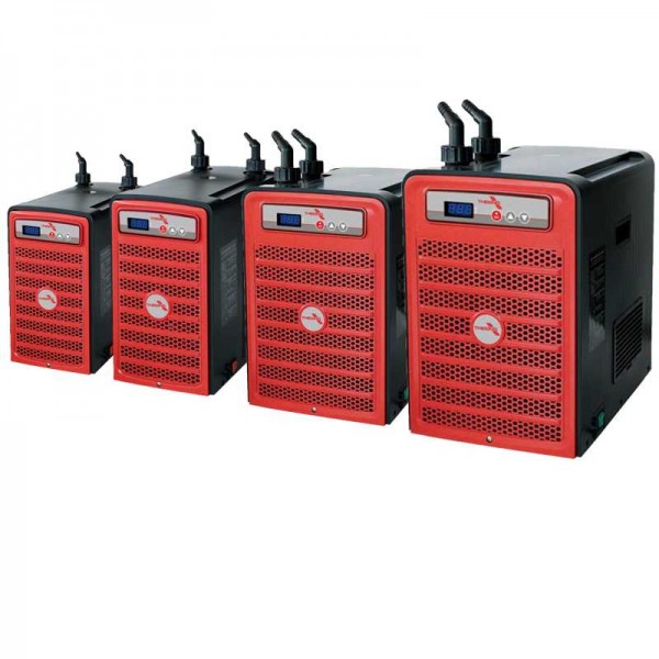 Chladicí jednotky jsou vybaveny titanovými tepelnými výměníky odolnými proti mořské vodě a digitálním regulátorem teploty.