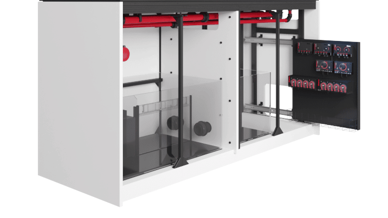 Vysouvací ovládací panel umožňuje snadnou montáž a přístup k ovladačům a dalšímu vybavení. *Skutečná barva vnitřku skříně je černá.
