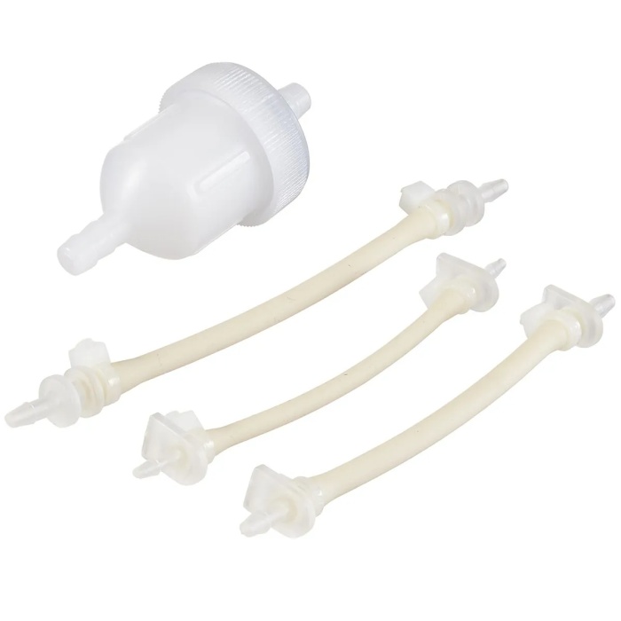 Sada obsahuje náhradní hadičky dávkovacího čerpadla pro čerpadlo A (odpad), čerpadlo B (vzorek vody) a čerpadlo C (reagenci). Součástí je také nový vodní filtr pro potrubí vzorku vody.