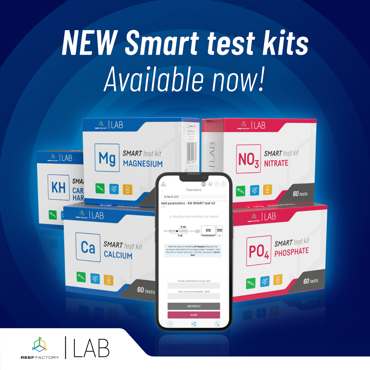 Testovací sada Mg Smart test kit je jedním z produktové řady základních testů vyvinutých společností Reef Factory LAB.