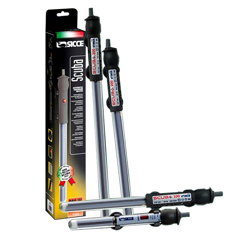 Nabízíme 5 typů akvarijních topítek s označením SCUBA s výkonem od 25 do 300W (25-50-100-200-300W).