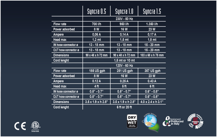 Čerpadla Syncra Silent se ideálně hodí pro použití v mořské a sladkovodní akvaristice, v teraristice, k proteinovým odpěňovačům, k ochlazování, pro vnitřní a venkovní fontány a mají mnoho dalších využití, kde je vyžadován vyšší výkon a extrémně nízká provozní hlučnost.