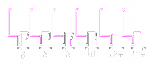 Obrázek níže zobrazuje jak lze hřebeny instalovat při různé tloušťce akvarijního skla. Základní díl (tzv. "runner") obsahuje hřeben (zvyrazněn růžově), který lze ohnout do správného tvaru, a tak se přizpůsobit tloušťce skla (6-8mm). Na základním dílu je značka kde lze díl ohnout. Hřeben je celkem robustní, takže drží zákl. díl v požadované poloze, tj. v případě úprav je třeba vyvinout patřičnou sílu k další úpravě/ohýbání dílu do požadovaného tvaru atd.